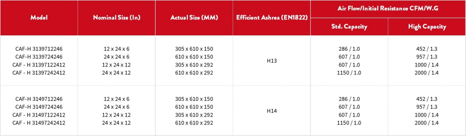 The CAF – Aluminium Separator HEPA Filters are specially designed to control laminar airflow under high humidity conditions. Low initial pressure media lengthen the life of the filter. They replace pocket filters in the Pharmaceutical, Semi conductor, Hospital, and Aerospace Industries.